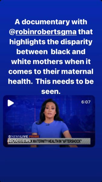 Ginger penned: “A documentary with @robinrobertsgma that highlights the disparity between black and white mothers when it comes to their health. This needs to be seen.”