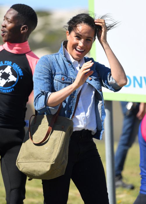 Meghan is a huge fan of Madewell, and during a royal visit to South Africa she teamed the brand’s timeless The Jean Jacket with The Canvas Medium Transport Tote in the green British Surplus colorway.