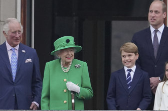 Future kings with Queen Elizabeth: From left, Prince Charles, Prince George and Prince William. One in three Britons support Australia becoming a republic. Credit:AP